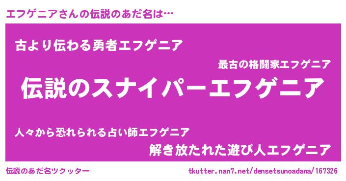 | ヘコむあだ名 | 『エフもー』『エフゲニア(苦笑)』 |