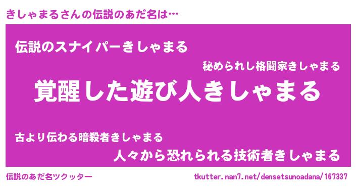 | 男性向けラノベタイトル風あだ名 | 『きしゃまるの嫁は女の子じゃないと思った?』 |