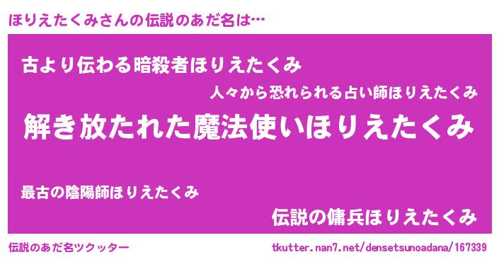 | ヘコむあだ名 | 『ほりを』『ほりえたくみ(爆)』 |