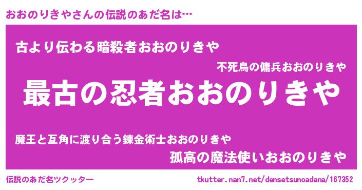 | 意味不明あだ名 | 『おおのりきやフォーエバー』 |