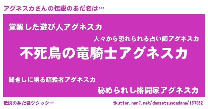 | ヒーロー風カッコイイあだ名 | 『スーパーアグネスカ』『仮面アグダー』 |