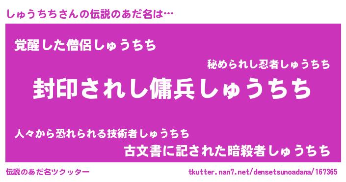 | ヒーロー風カッコイイあだ名 | 『スーパーシュウチチ』『天弓騎士シュ』 |