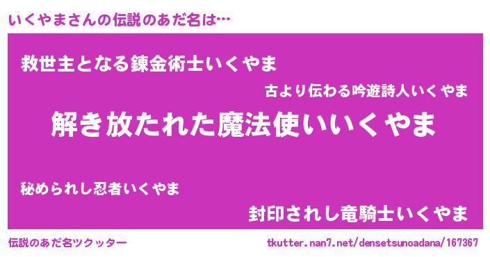 | 意味不明あだ名 | 『住所不定無職いくやま(9歳)』 |