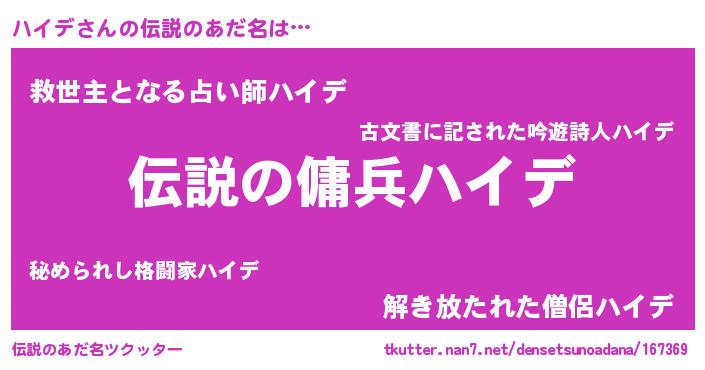 | 胡散臭い通販商品みたいなあだ名 | 『必ず成功する水晶球…その名も「ハイデ」』 |