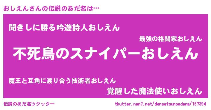 | 胡散臭い通販商品みたいなあだ名 | 『モテモテ間違いなし霊験あらたかなお札…その名も「おしえん」』 |