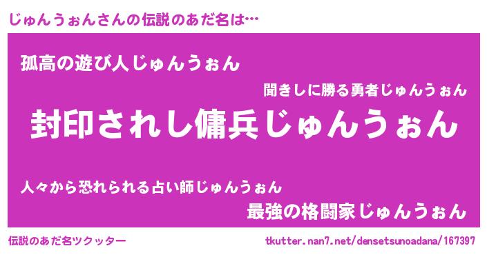 | 胡散臭い通販商品みたいなあだ名 | 『億万長者になれる水晶球…その名も「じゅんうぉん」』 |