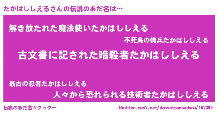 | 意味不明あだ名 | 『自称たかはししえる』 |