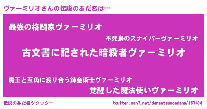| 意味不明あだ名 | 『永久保存ヴァーミリオ』 |