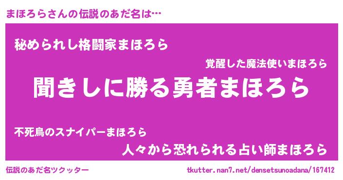 | 意味不明あだ名 | 『永久保存まほろら』『自称まほろら』 |