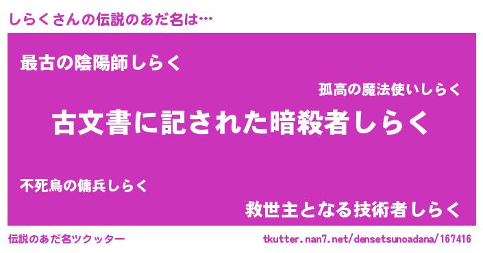 | ヒーロー風カッコイイあだ名 | 『ネオシラク』『最強戦士シラク』 |