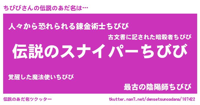 | 胡散臭い通販商品みたいなあだ名 | 『必ず成功する霊験あらたかなお札…その名も「ちびび」』 |