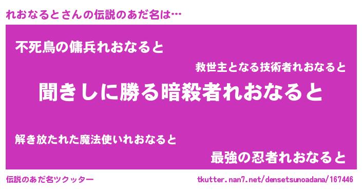 | 意味不明あだ名 | 『永久保存れおなると』『自称れおなると』 |