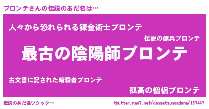 | 意味不明あだ名 | 『ブロンテフォーエバー』 |