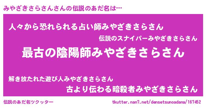 | 意味不明あだ名 | 『自称みやざきさらさん』 |