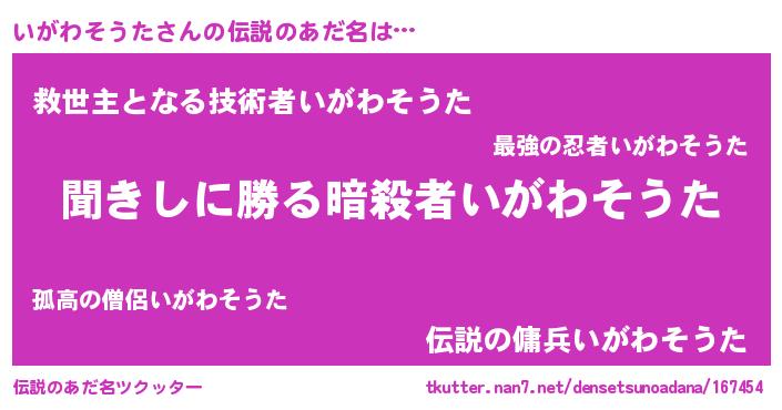 | 胡散臭い通販商品みたいなあだ名 | 『絶対に幸福をもたらす健康食品…その名も「いがわそうた」』 |
