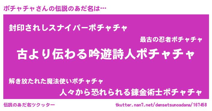 | ファンタジー風あだ名 | 『ポチディッシュ』『ポチフェル』 |