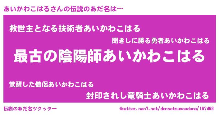 | 意味不明あだ名 | 『自称あいかわこはる』 |
