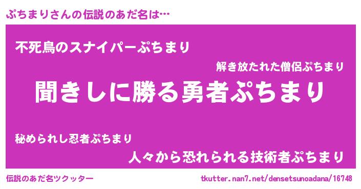 | ヒーロー風カッコイイあだ名 | 『仮面プチダー』『ネオプチマリ』 |