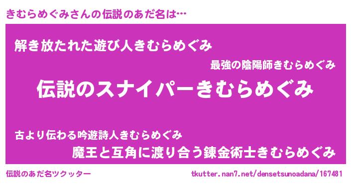 | 胡散臭い通販商品みたいなあだ名 | 『必ず成功する霊験あらたかなお札…その名も「きむらめぐみ」』 |