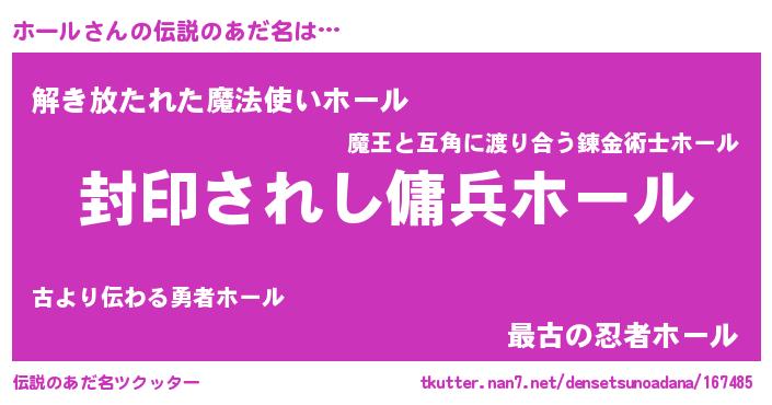 | 胡散臭い通販商品みたいなあだ名 | 『億万長者になれる水晶球…その名も「ホール」』 |