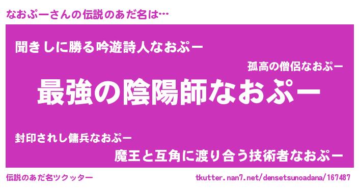 | 欧米人風あだ名 | 『なおぷークリステル』 |