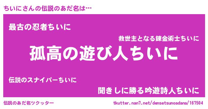 | 胡散臭い通販商品みたいなあだ名 | 『信頼と実績のペンダント…その名も「ちいに」』 |