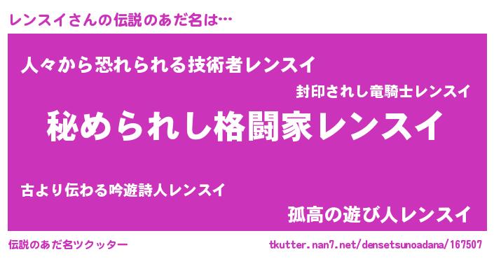 | 欧米人風あだ名 | 『レンスイクリステル』 |