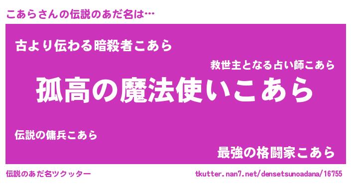 | 胡散臭い通販商品みたいなあだ名 | 『信頼と実績のサプリメント…その名も「こあら」』 |