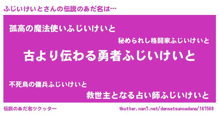 | ヒーロー風カッコイイあだ名 | 『ネオフジイケイト』『仮面フジダー』 |