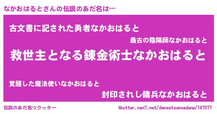 | 意味不明あだ名 | 『自称なかおはると』 |
