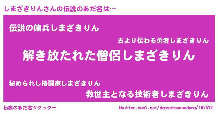 | 男性向けラノベタイトル風あだ名 | 『しまざきりんに滅ぼされるだけの簡単なお仕事です』 |