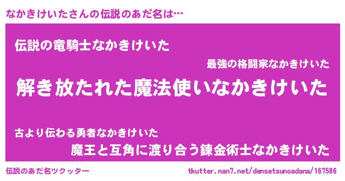 なかきけいたさんの伝説のあだ名をツクッター!