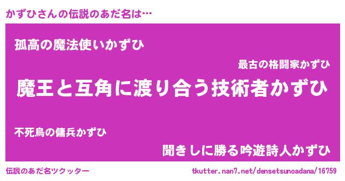 | ヒーロー風カッコイイあだ名 | 『愛の使者かずひ』『暗黒騎士カズ』 |
