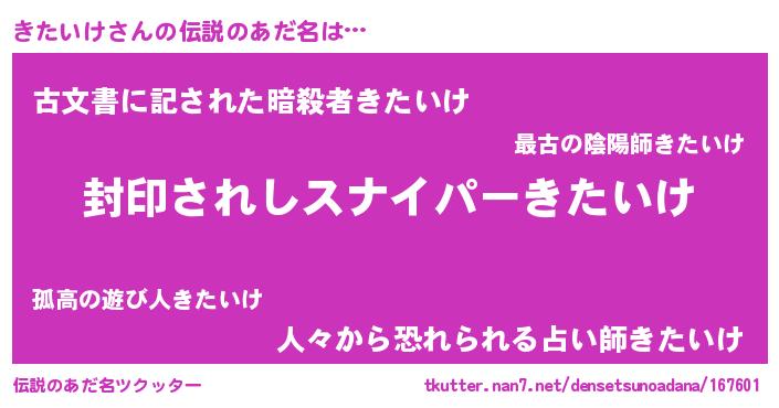 | 胡散臭い通販商品みたいなあだ名 | 『億万長者になれる霊験あらたかなお札…その名も「きたいけ」』 |