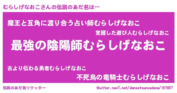 | ファンタジー風あだ名 | 『エターナルムラシゲナオコー』 |