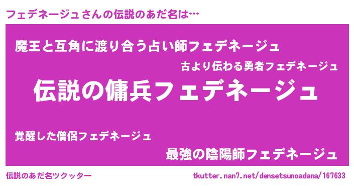 | 胡散臭い通販商品みたいなあだ名 | 『必ず成功する水晶球…その名も「フェデネージュ」』 |