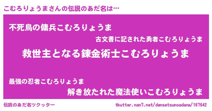 | ヒーロー風カッコイイあだ名 | 『天空の使者こむろりょうま』 |