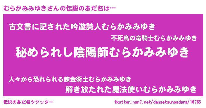 | 女子向けラノベタイトル風あだ名 | 『むらかみみゆきなんてお断りですっ。』 |