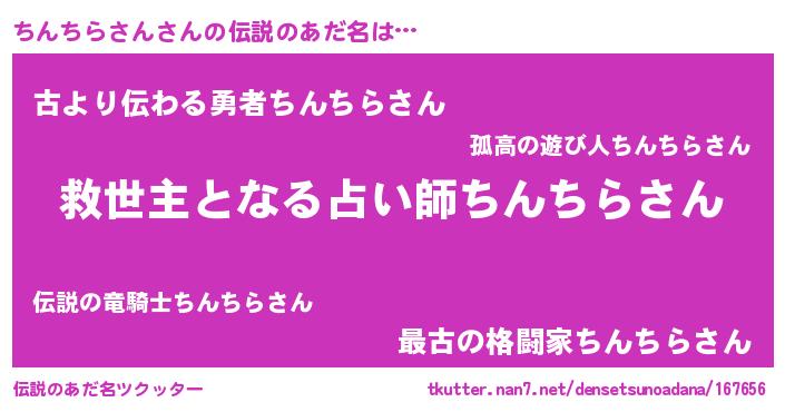 | ヒーロー風カッコイイあだ名 | 『天空の使者ちんちらさん』 |