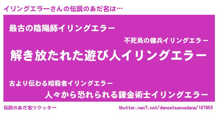 | 意味不明あだ名 | 『とにかく怪しいイリングエラー』 |