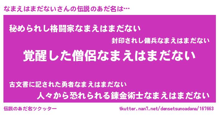 | 女子向けラノベタイトル風あだ名 | 『なまえはまだない様がみてる』 |