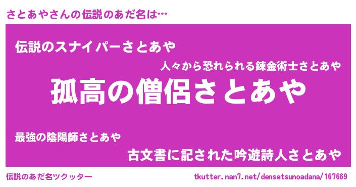 | 意味不明あだ名 | 『住所不定無職さとあや(47歳)』 |