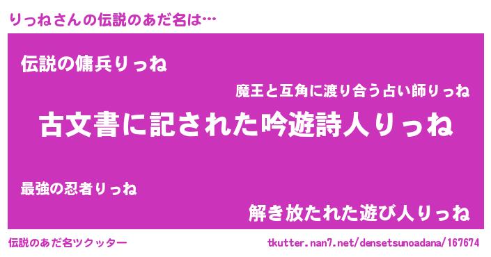| 意味不明あだ名 | 『自称りっね』『永久保存りっね』 |