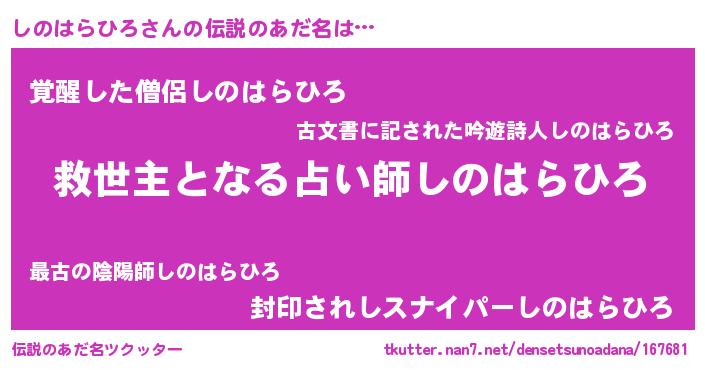 | ヒーロー風カッコイイあだ名 | 『天空の使者しのはらひろ』 |