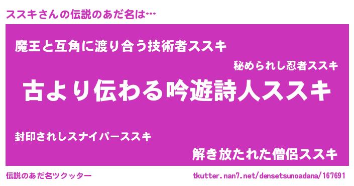 | ヒーロー風カッコイイあだ名 | 『ネオススキ』『友情の使者ススキ』 |