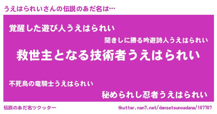 | ヒーロー風カッコイイあだ名 | 『慈愛の使者うえはられい』 |
