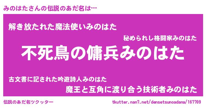 | 胡散臭い通販商品みたいなあだ名 | 『モテモテ間違いなし水晶球…その名も「みのはた」』 |