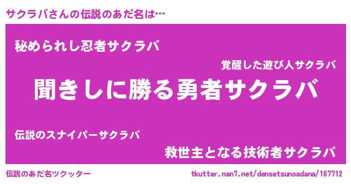 | ヒーロー風カッコイイあだ名 | 『ネオサクラバ』『究極戦士サクラバ』 |
