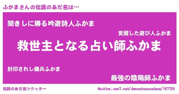 | ヒーロー風カッコイイあだ名 | 『天空の使者ふかま』『仮面フカダー』 |