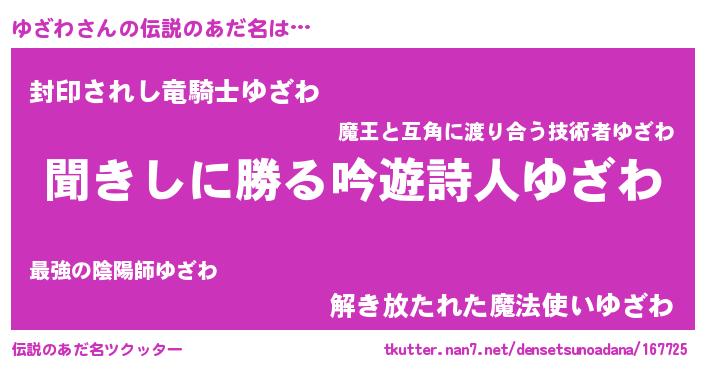 | ヘコむあだ名 | 『ゆざわ(小並感)』『ゆざっふぃ~』 |